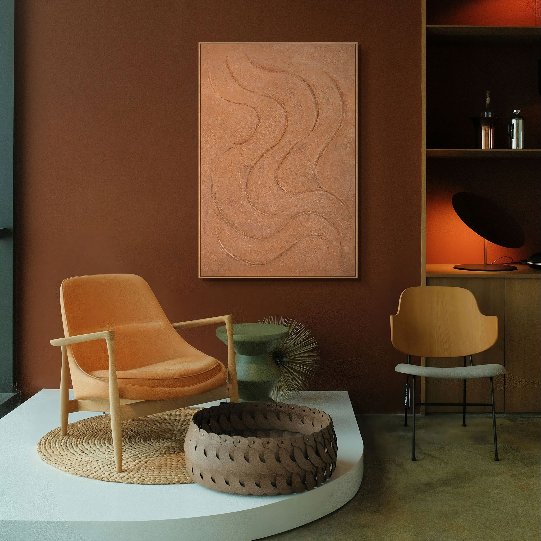 „Lämpimät rytmit“ yhdistää orgaaniset muodot, lämpimät luonnonsävyt ja käsinmaalatun rakenteen eksklusiiviseksi uniikiksi. Se tuo rauhaa ja eleganssia moderneihin tiloihin – ilmaisella toimituksella.