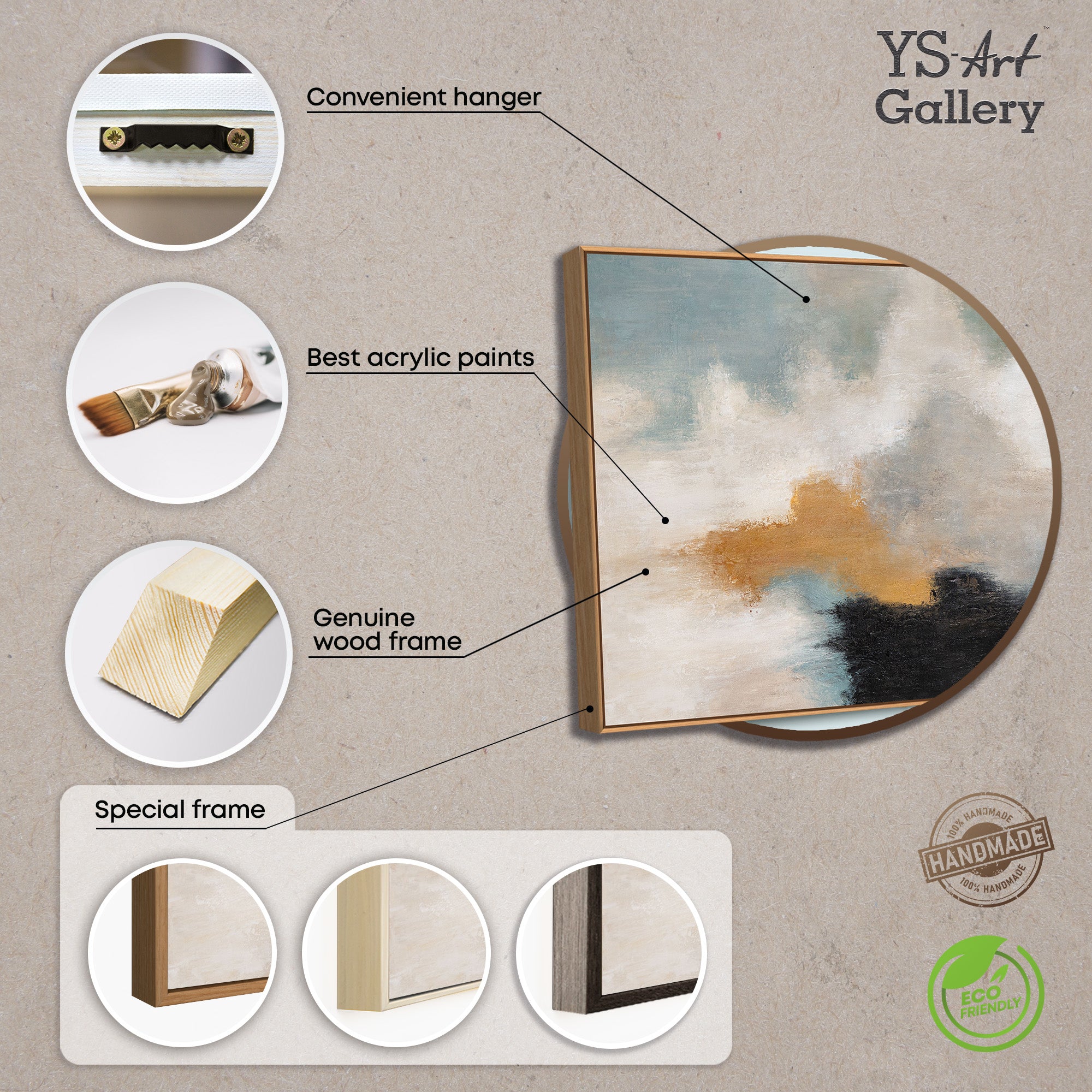 • Abstrakti maalaus kehyksillä - Moderni seinätaide beigen, sinisen ja kullan sävyissä "Valon siirtymät"