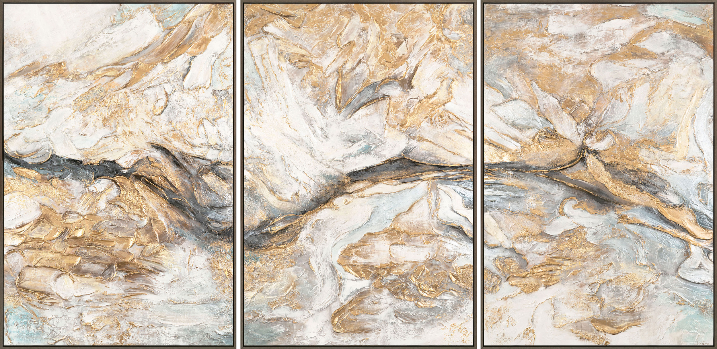 • Struktur mit goldenen Akzenten auf der mittleren Leinwand
