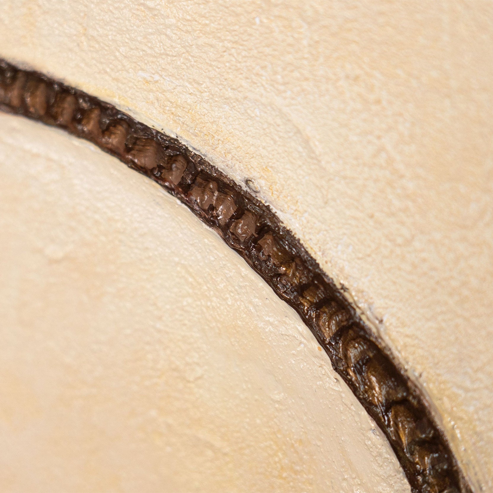 „Krümmung des Horizonts“ spielt mit sanften Übergängen und natürlichen Farbtönen. Die geschwungenen Linien in Beige und Braun fließen harmonisch ineinander und erzeugen das Gefühl von Bewegung und Ruhe zugleich. Die Struktur des Acryls verleiht der Oberfläche eine spürbare Tiefe und Lebendigkeit.