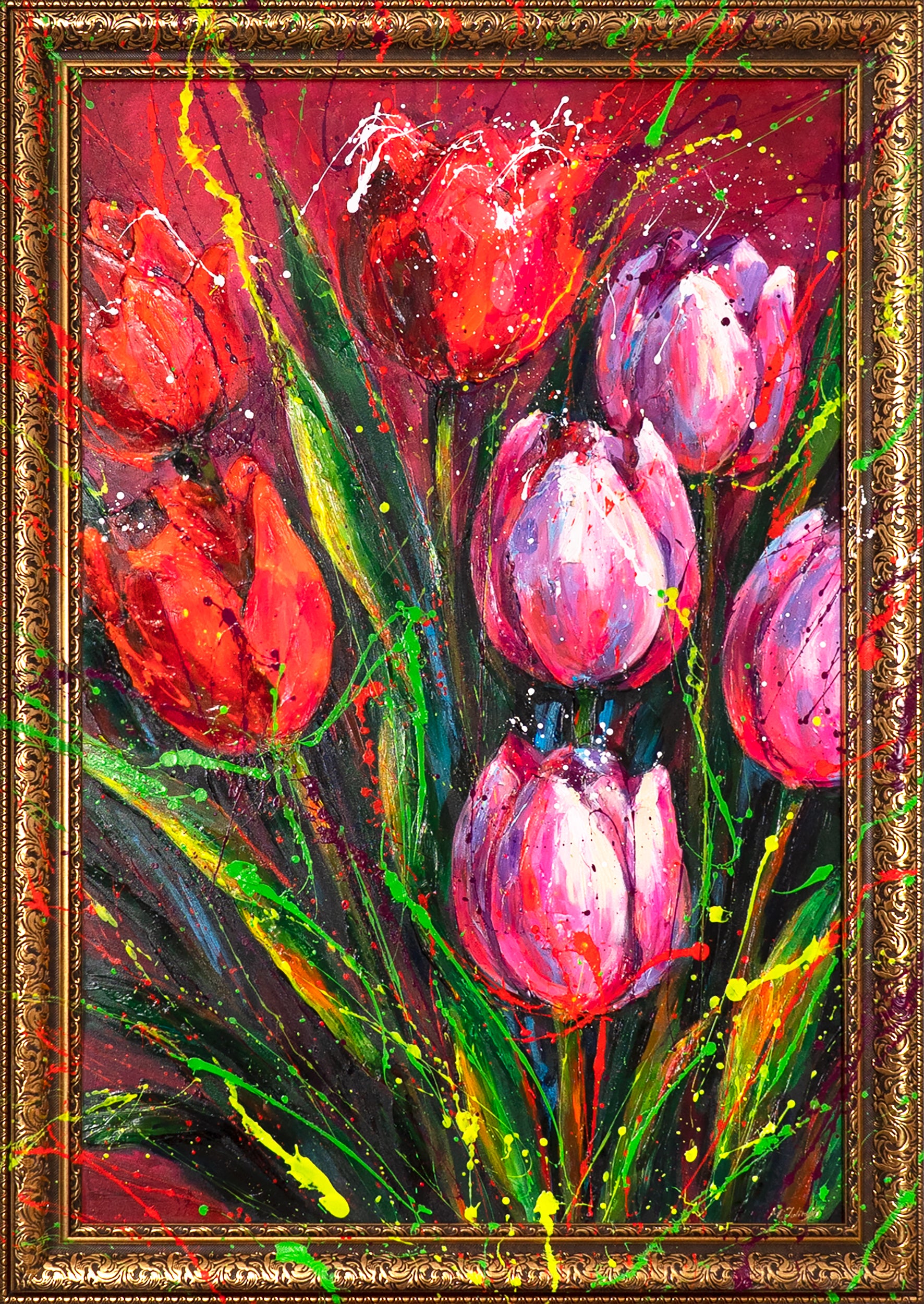 • Rote Tulpen handgemaltes Acryl Leinwandbild im Atelier