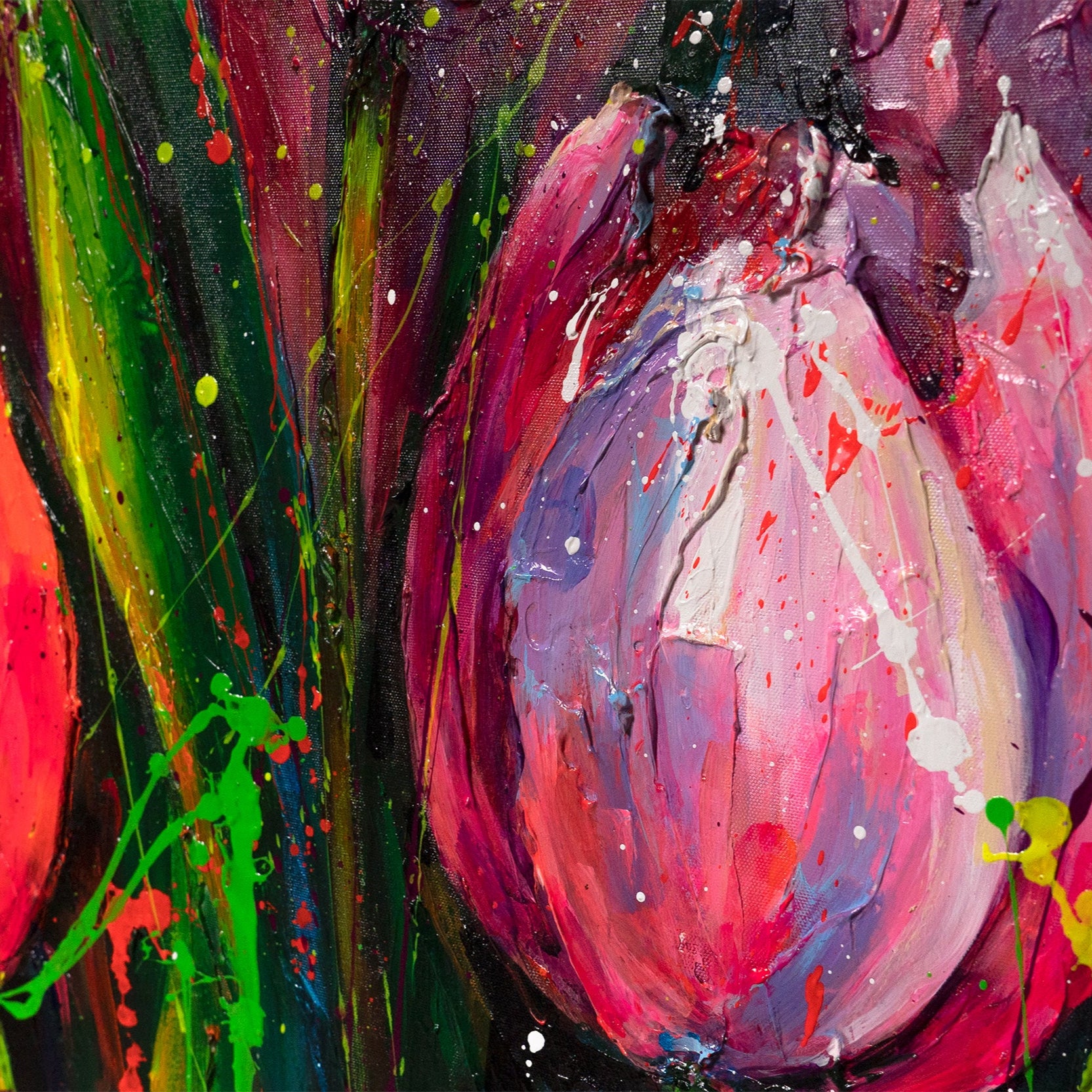 • Acrylmalerei Tulpen abstraktes Leinwandbild Nahaufnahme
