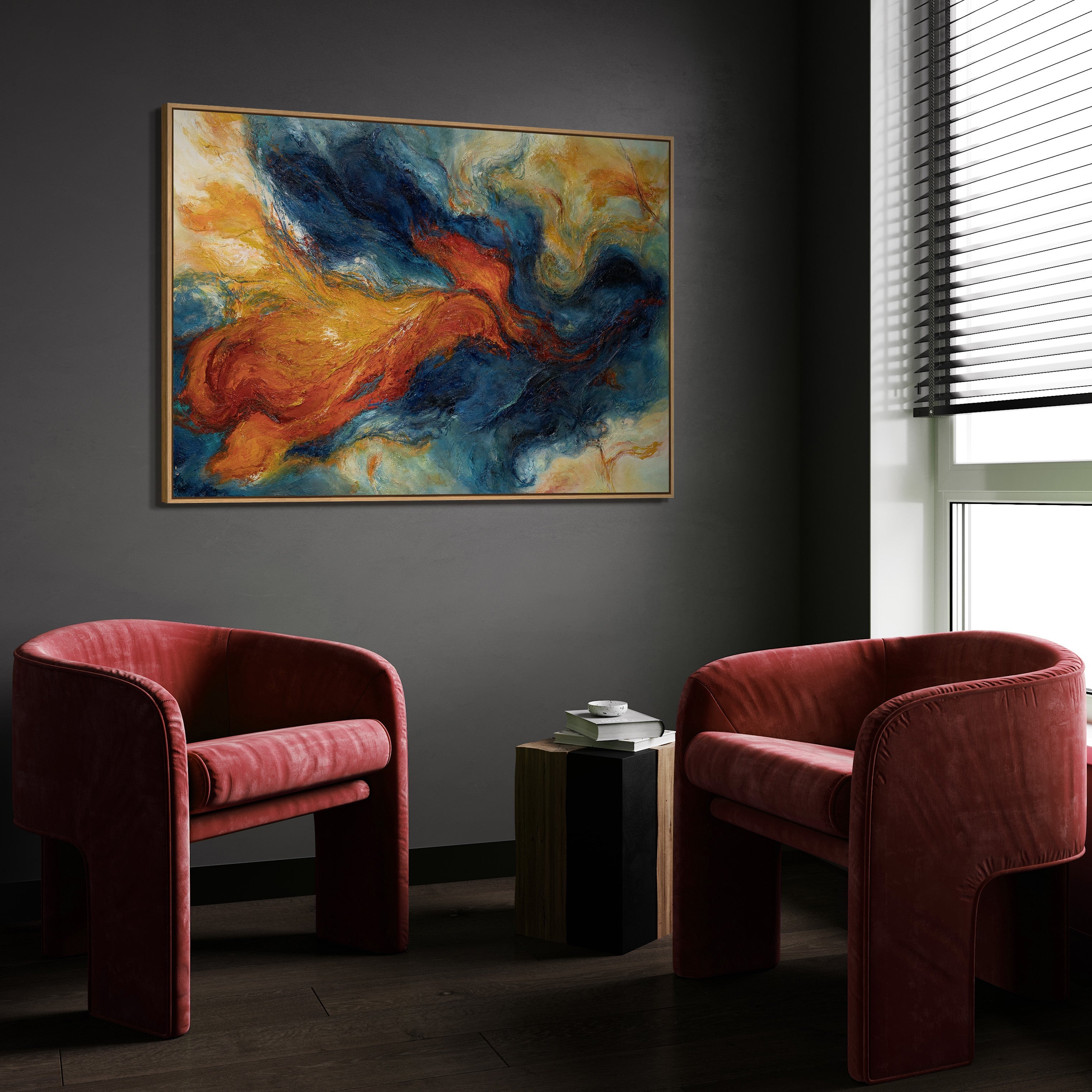 Dieses Gemälde eignet sich ideal für moderne, kreative und ausdrucksstarke Interieurs. Es wirkt als dominanter Blickfang und bringt Lebendigkeit, Dynamik und künstlerische Präsenz in Wohnräume, Lofts, Büros oder repräsentative Bereiche. „Verschmelzung der Energien“ setzt ein klares Statement und verleiht dem Raum Charakter.