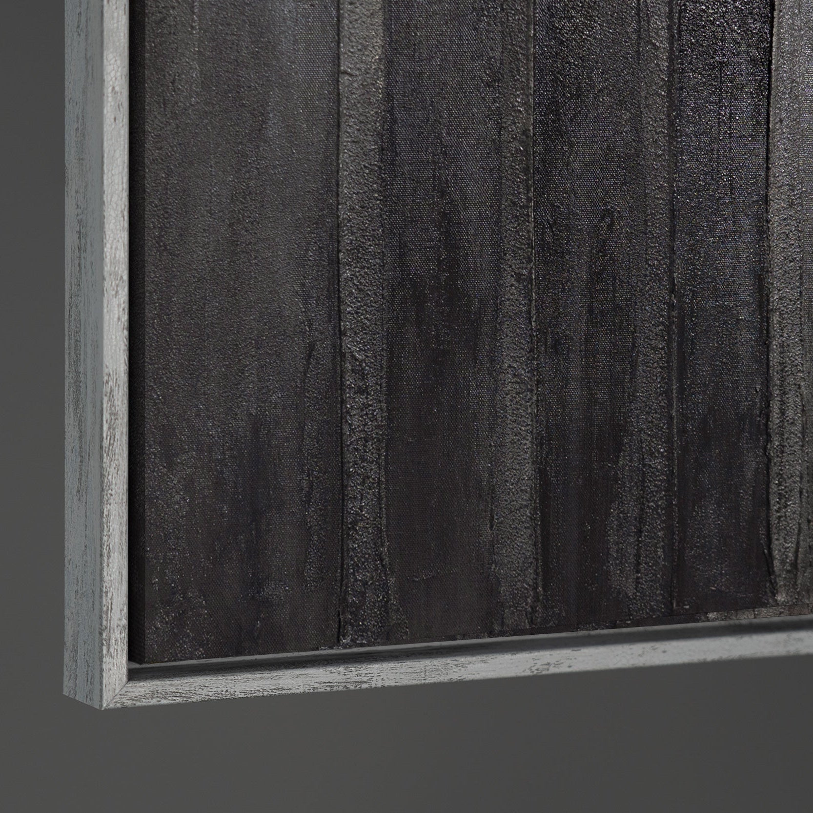 Gemälde Abstrakt mit Rahmen „Stadtkonturen“ – Moderne Acrylmalerei in Grau & Schwarz