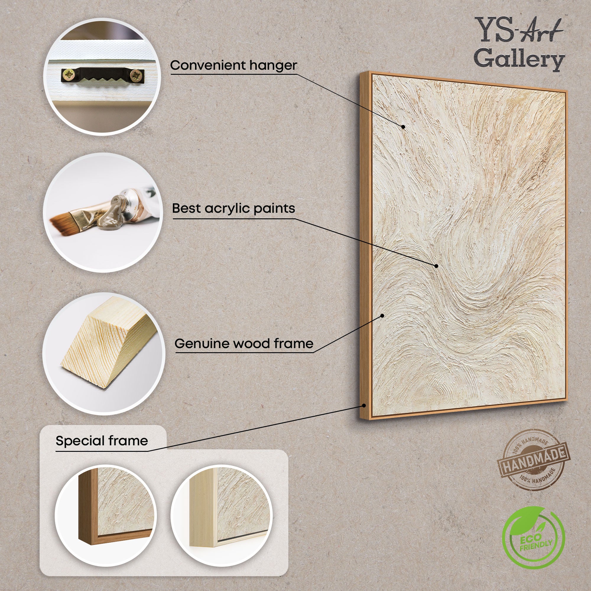 Gemälde mit Rahmen „Baumstrom“ – Abstrakte Kunst in Beige und Creme