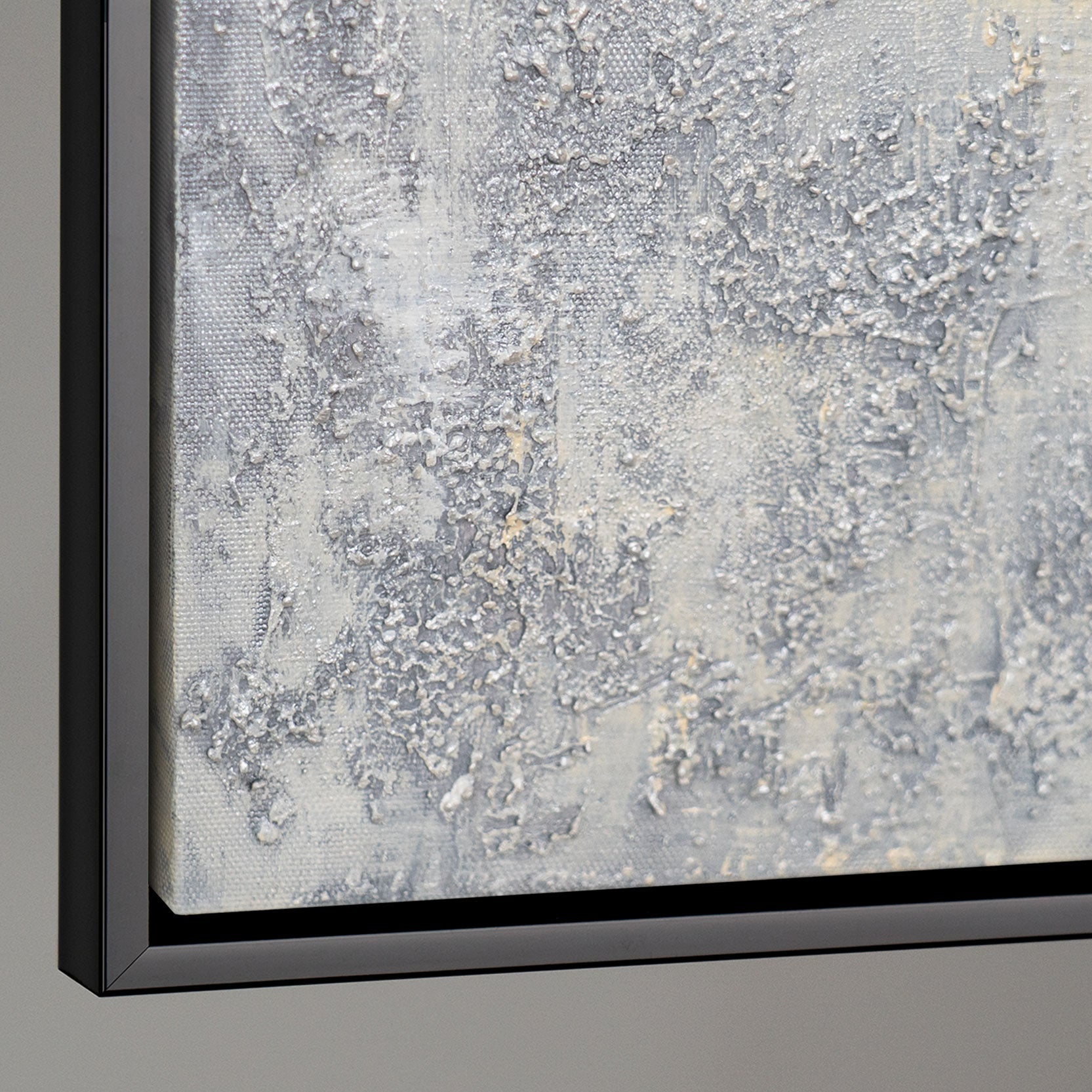 • Handgemalte Acrylmalerei mit Rahmen „Atem des Winters“ – Abstrakte Kunst in Schwarz-Weiß