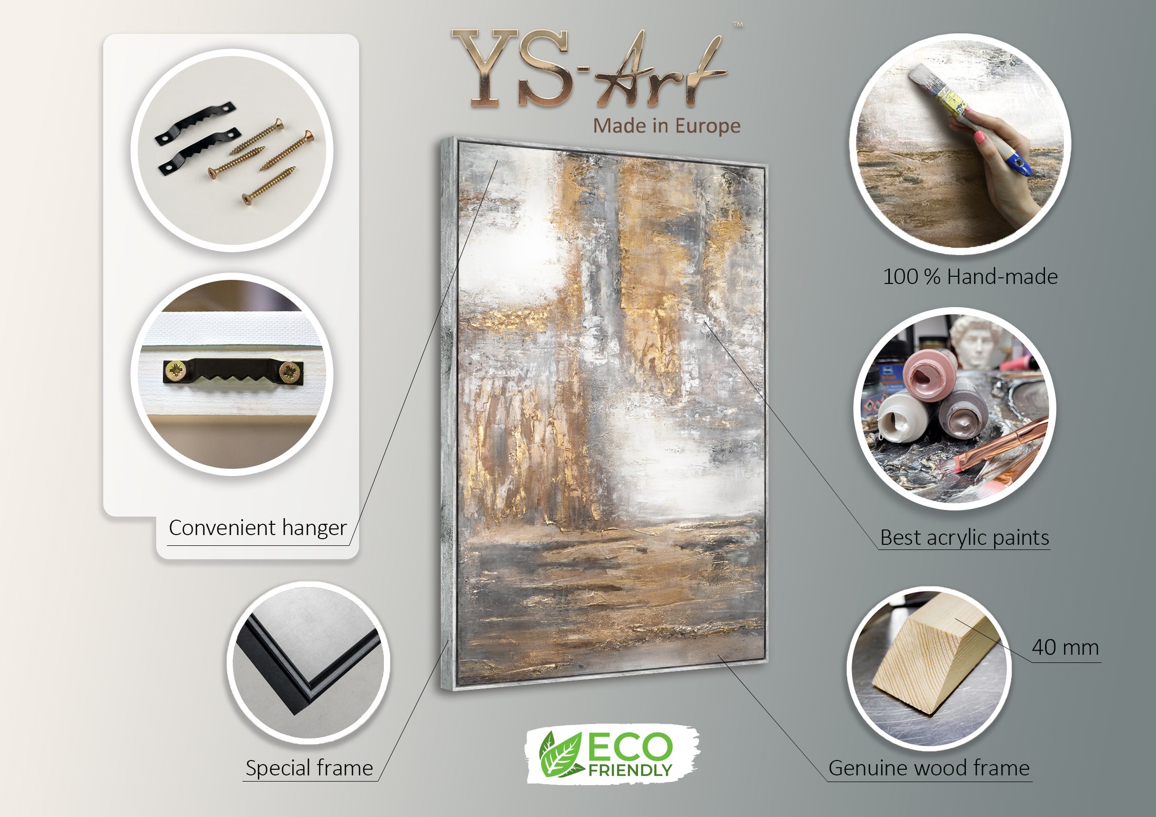 Tämä käsinmaalattu canvas taulu „Päivänkoitto“ lumoaa harmonisella kultaisen, harmaan ja valkoisen sävyjen sekoituksella. Taidokas tekstuuri ja kiiltävät kultakorostukset antavat teokselle syvyyttä ja luksuksen leiman. Olipa kyseessä katseenvangitsija olohuoneessa, toimistossa tai eteistilassa – tämä abstrakti taulu kankaalle luo tyylikkäitä yksityiskohtia ja ainutlaatuisen tunnelman.