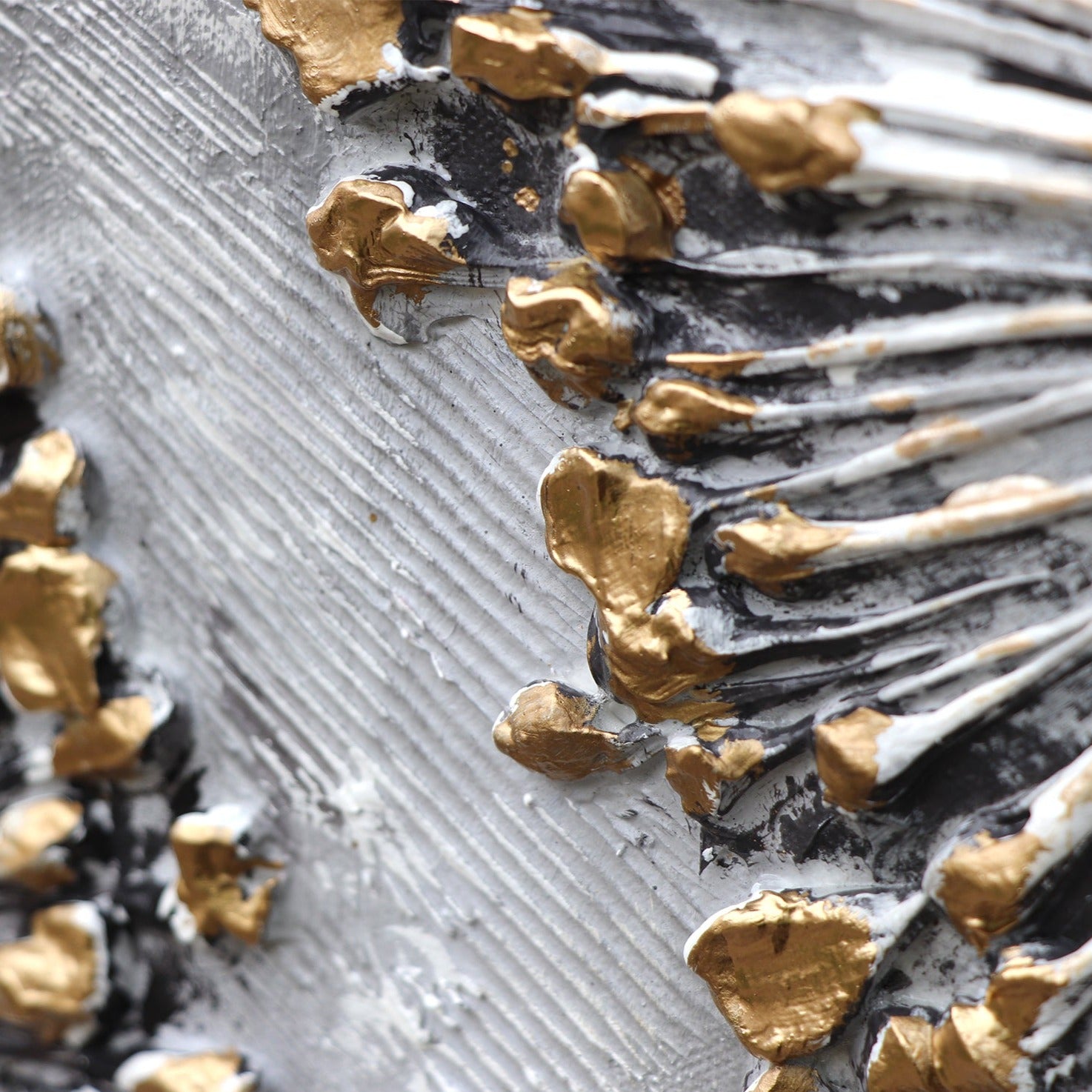 Tuokaa Luonnon Kauneus Kotinne käsinmaalatun maalaus Kukka-maalauksen avulla. Elegantit Harmaat sävyt ja Kultaiset Korostukset luovat tilaasi modernin ja ylellisen Ilmeen. Tämä Taideteos on täysin käsintehty, mikä tekee jokaisesta maalaukset taulut ainutlaatuisen Mestarityön. Hyödyntäkäämme ilmainen Toimitus.