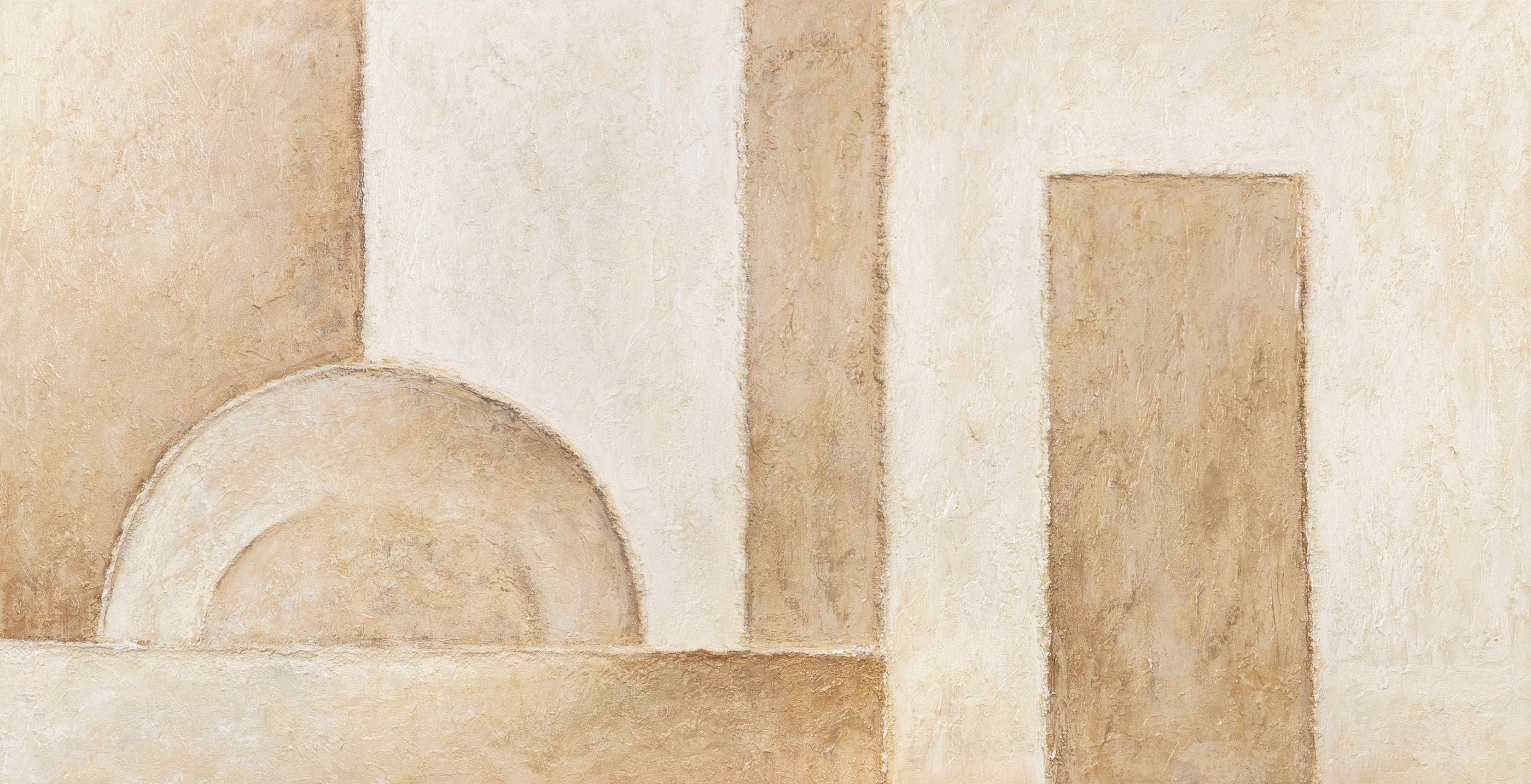 Tuo selkeää eleganssia ja arkkitehtonista harmoniaa kotiisi tällä käsinmaalatulla canvas taulu -teoksella. Geometriset muodot pehmeissä beigen ja hiekan sävyissä yhdistyvät moderniin, minimalistiseen sommitelmaan, joka huokuu rauhaa ja tasapainoa.