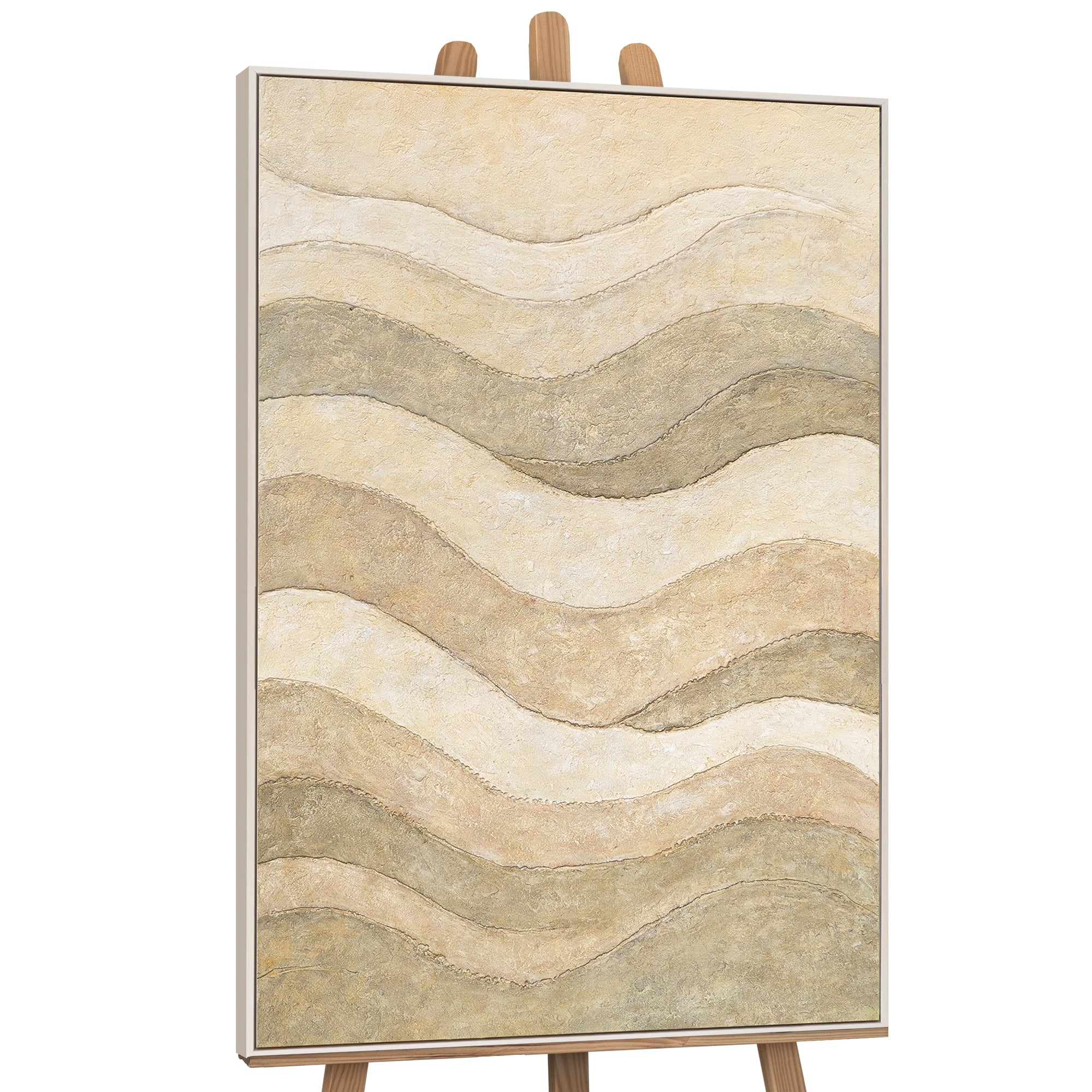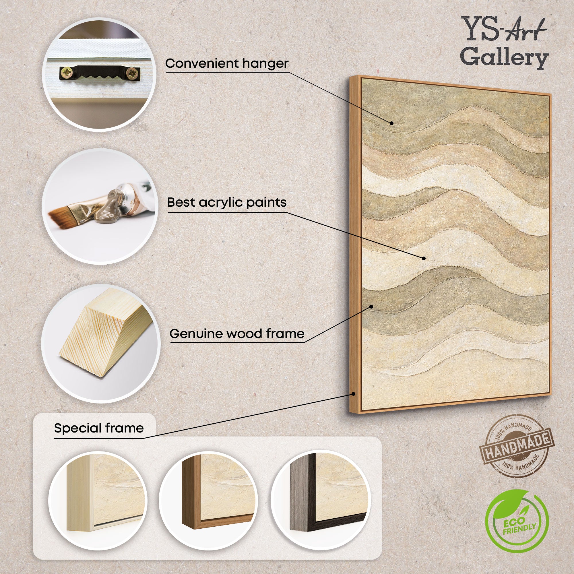 Tuo eleganssia ja rauhaa kotiisi tällä käsintehdyllä abstrakti taulu -teoksella. Lämmin beigen, pehmeiden hiekan sävyjen ja maanläheisten vivahteiden harmoninen yhdistelmä tekee tästä maalauksesta todellisen katseenvangitsijan.