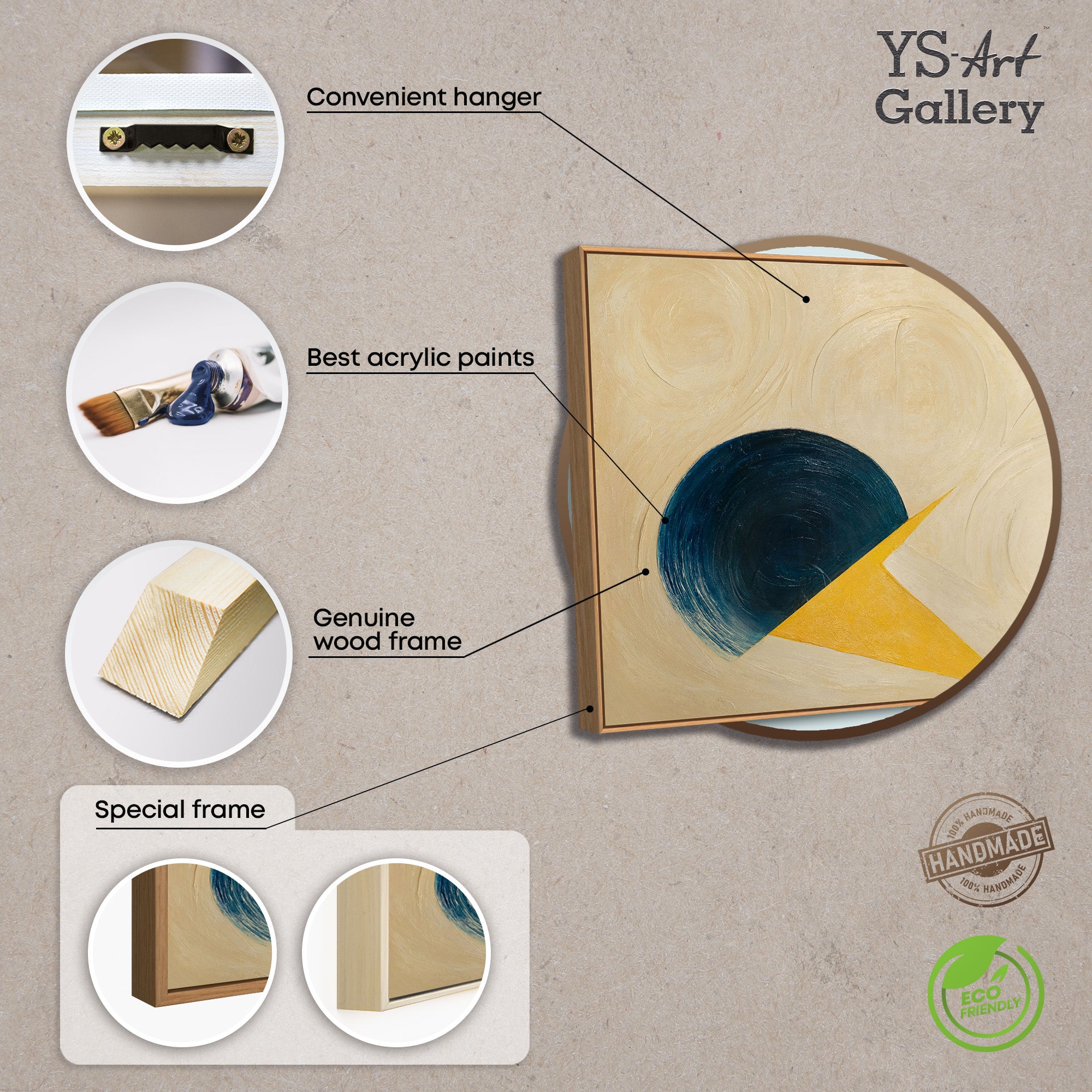 „Schnitt durch den Horizont“ ist ein modernes abstraktes Acrylgemälde mit klaren geometrischen Formen und starkem Farbkontrast. Die Kombination aus tiefem Blau, warmem Gelb und einer ruhigen, hellen Fläche erzeugt Spannung und Balance zugleich. Die strukturierte Oberfläche verleiht dem Werk Tiefe und eine hochwertige, zeitgemäße Wirkung.