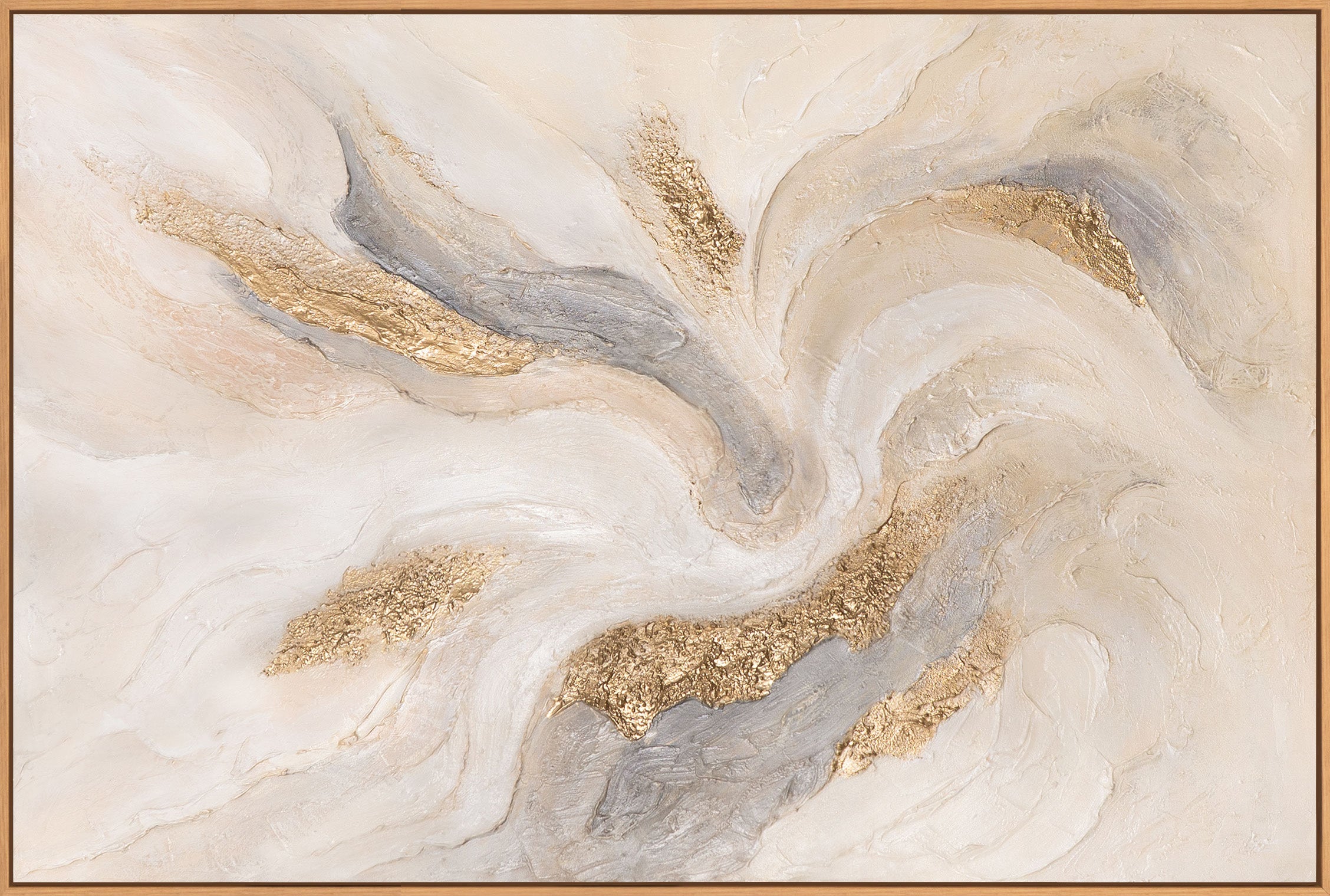 Modernes Struktur Gemälde in Naturtönen – Handgemalte Leinwandkunst mit Rahmen „Strahlende Ströme“