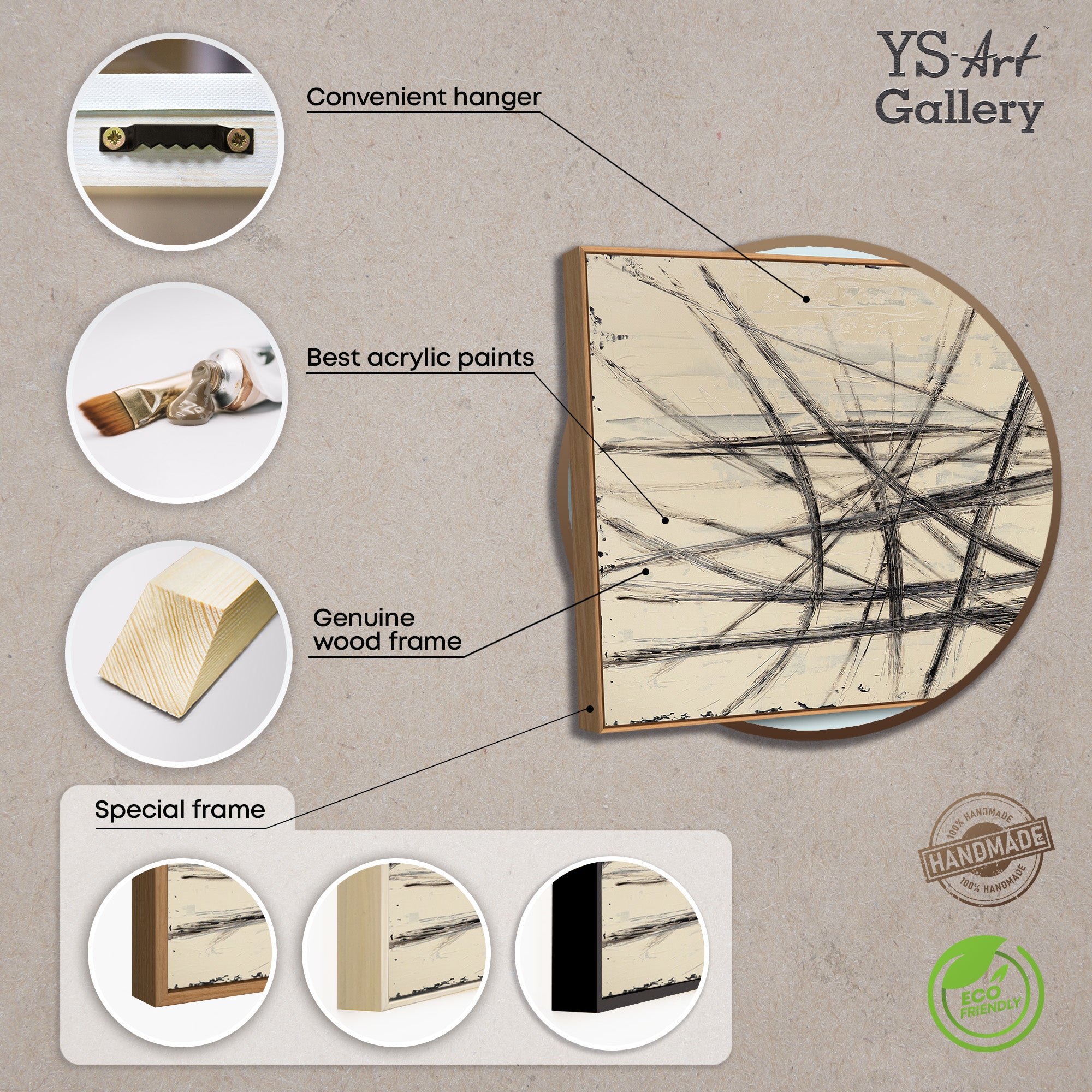 - Käsinmaalattu: Kyllä, jokainen akryylimaalaus on ainutlaatuinen
