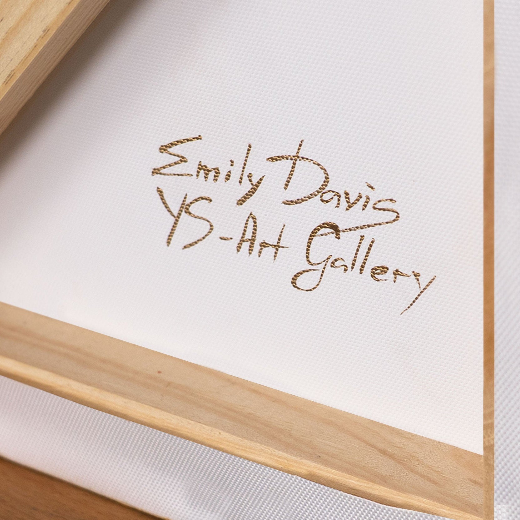 Jokainen työ on maalattu käsin korkealaatuiselle kankaalle ja pingotettu tukevan puukehyksen varaan – heti valmis ripustettavaksi.