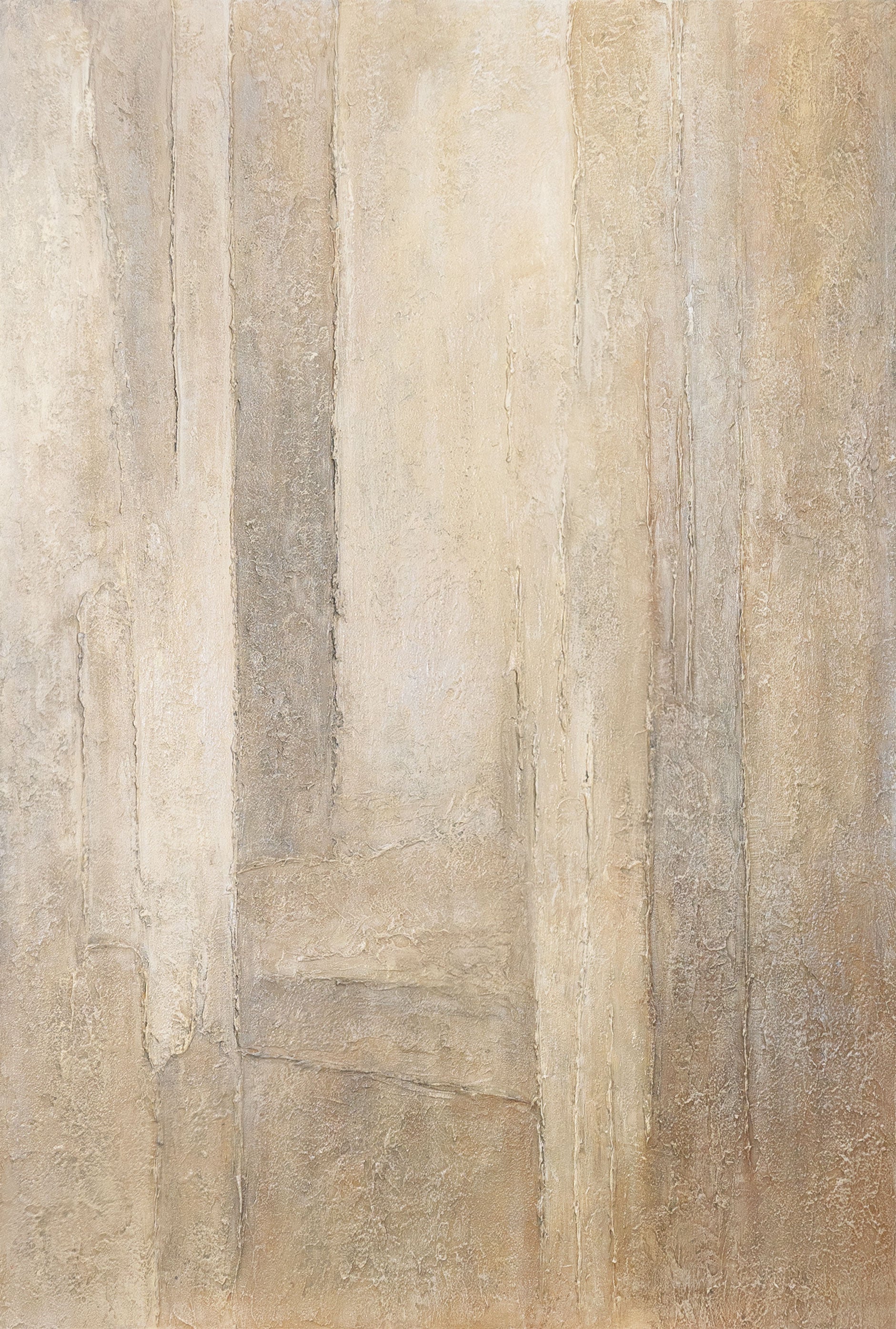 Tämä käsinmaalattu canvas taulu vakuuttaa rauhallisella, pystysuuntaisella sommitelmallaan ja harmonisella värivalinnallaan beigessä, hiekan ja pehmeän harmaan sävyissä. Reliefimäinen rakenne luo syvyyttä ja luonnollisuutta ja kutsuu katselijaa kontemplatiiviseen hetkeen.