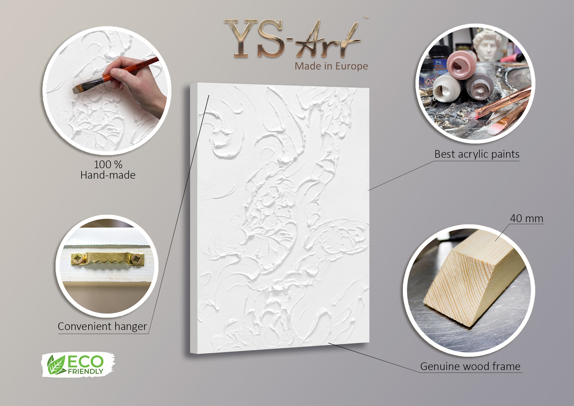 Vähintään yksityiskohtia, mutta samalla tekstuuri ja eleganssi – näin voidaan kuvata tämä moderni akryylitaulu. Trendikokoelman teos on poikkeuksellinen lisä moderniin sisustukseen.